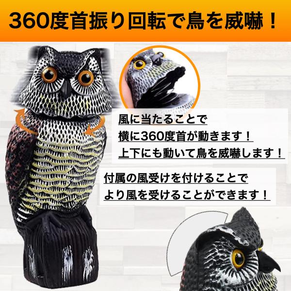 鳥よけグッズ ベランダ フクロウ 鳥避け ハト対策 カラスよけ からす カラス 避け ふくろう 置物 鳩よけ 撃退 首振り 車 玄関 畑