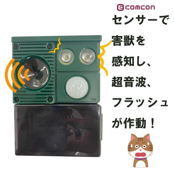 ノラ猫を追い出す 猫よけ 対策 超音波 ソーラー 音 ベランダ 強力 猫除け センサー 充電式 フラッシュ付き 動物
