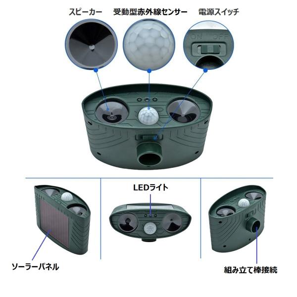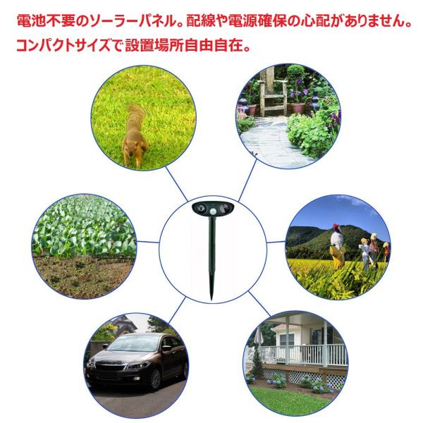 超音波動物撃退器 ソーラー式 野良犬・猫退治 猫よけ ねずみ撃退 鳥追い払う 太陽光充電