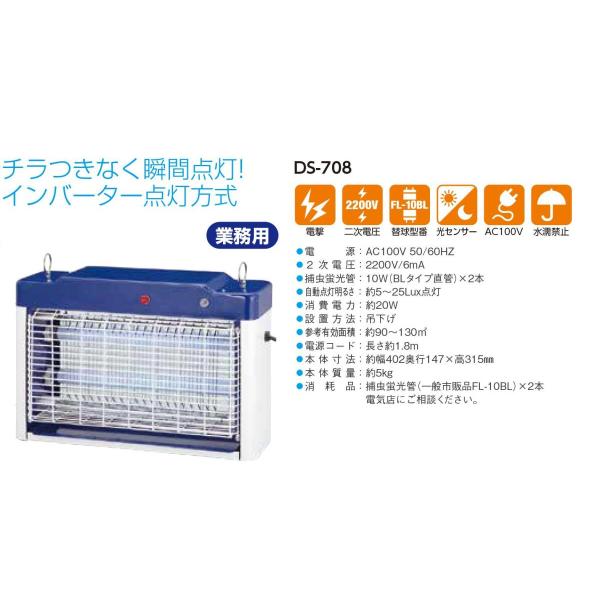 大進 電撃 殺虫器 電器 殺虫機 業務用 センサー付き DS-708 殺虫機 ユスリカ 対策 殺虫灯 殺虫 カメムシ コバエ チョウバエ 取り 電撃退治 殺虫器 虫駆除 捕虫器