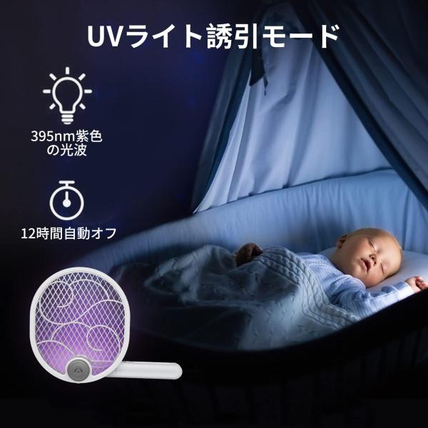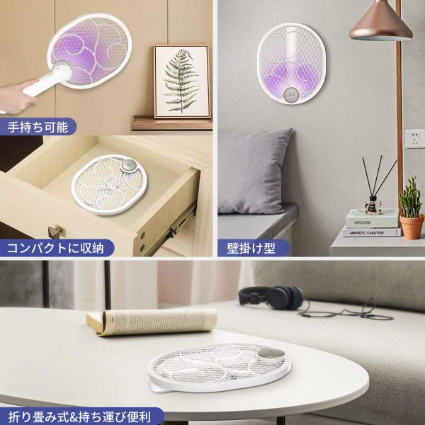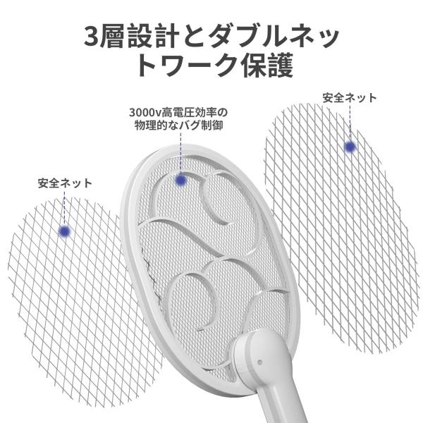 電撃殺虫ラケット 電撃殺虫器 折り畳み 蚊取り uvライト 強力電気ショック USB充電式 軽量 3層安全ネット 蚊対策 庭 登山 キャンプ アウトドア 室内 屋外