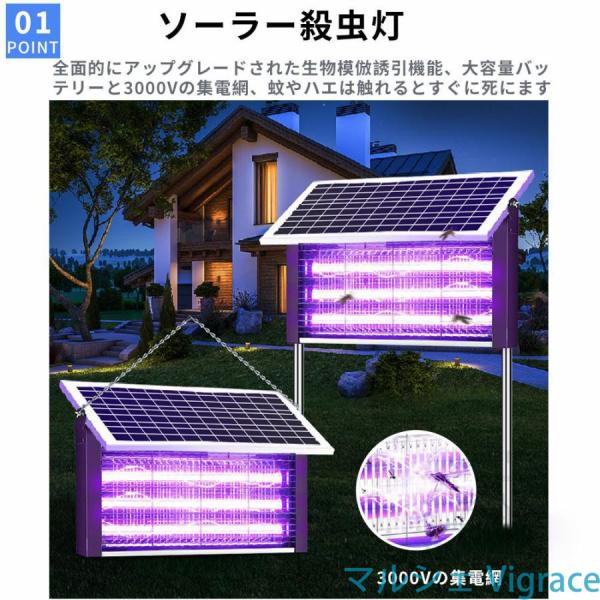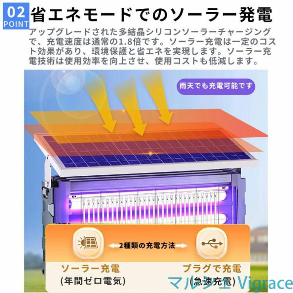 電撃殺虫器 蚊取り器 UV光源吸引式 屋外用 ソーラー usb充電式 電気蚊取り器 蚊取りランプ 省エネ 虫取り機 吊り下げ 効果抜群 薬剤不用 日本語取扱説明書付き