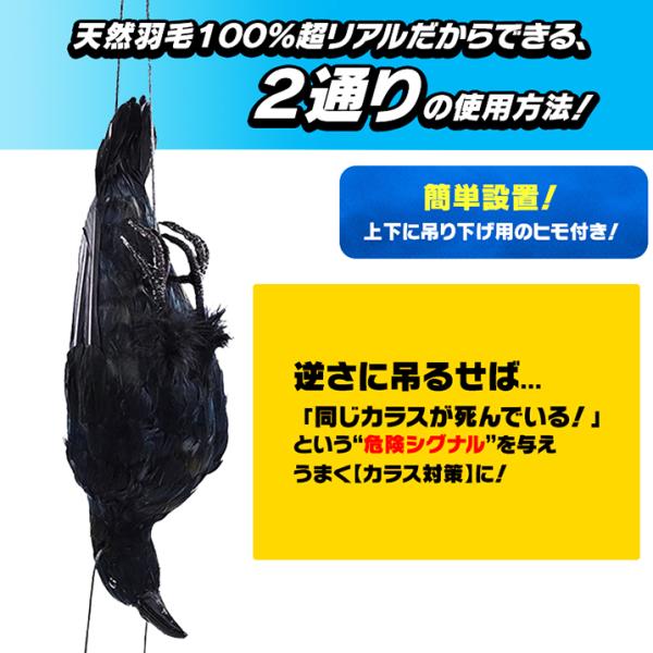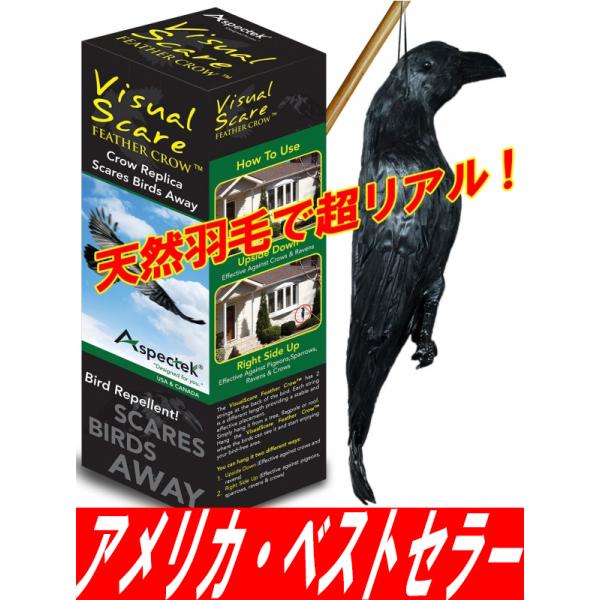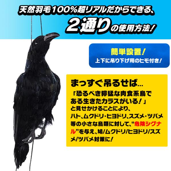 害鳥対策 天然羽毛 実物大 超リアル 簡単設置 カラス ハト ムクドリ ヒヨドリ スズメ ツバメ New防鳥クローンカラスVS102