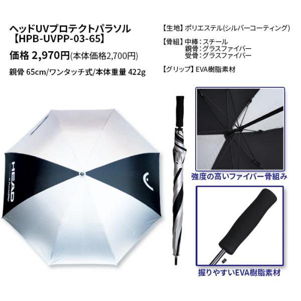 銀傘 HEAD by POWERBILT ゴルフ 親骨65cm 日傘 銀パラソル UVカット UV対策 紫外線 熱中症対策 晴雨兼用 ワンタッチ ジャンプ