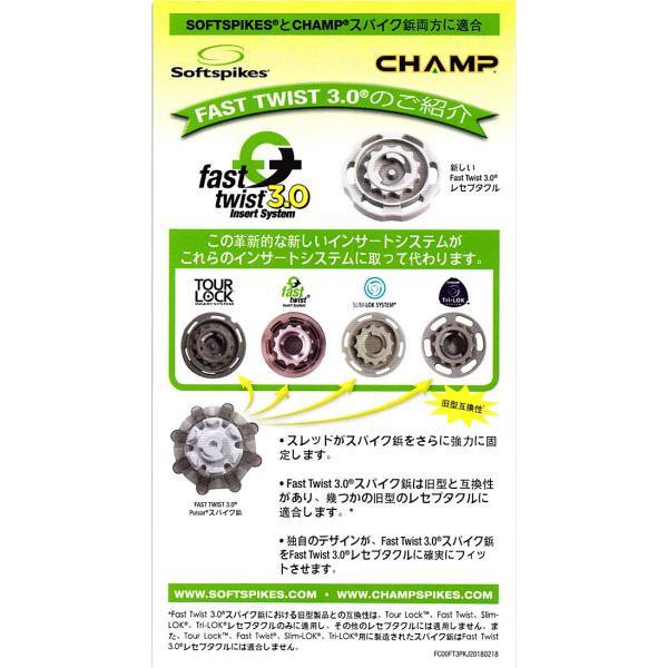 CHAMP チャンプ ザーマ ツアー fast twist3.0 18個入り S-98 送料無料 ゴルフ スパイク 鋲 ゴルフ用品 ラウンド用品 ライト LITE 国内正規輸入代理店モデル