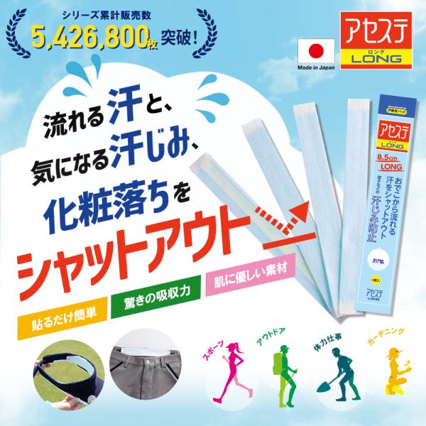 汗吸収パッド「アセステロング 5パック(20枚入り)」帽子 ファンデ汚れ防止 汗じみ防止 汗止めテープ 汗取りシート 使い捨て イオンスポーツ EON SPORTS