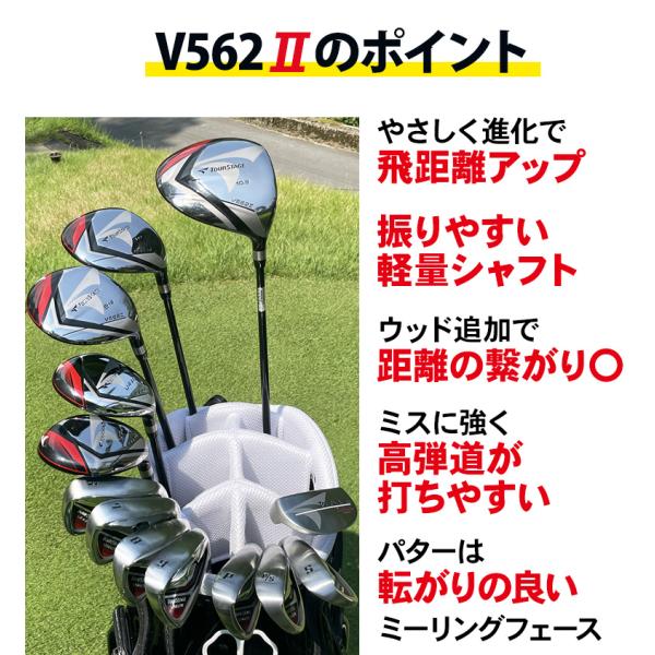 ブリヂストン ゴルフ ツアーステージ V562II クラブセット 13本組(1W,3W,5W,4U,5U,6-P,PS,S,PT) トゥルーロール ポケット スーパーミニ レーザー距離計付き