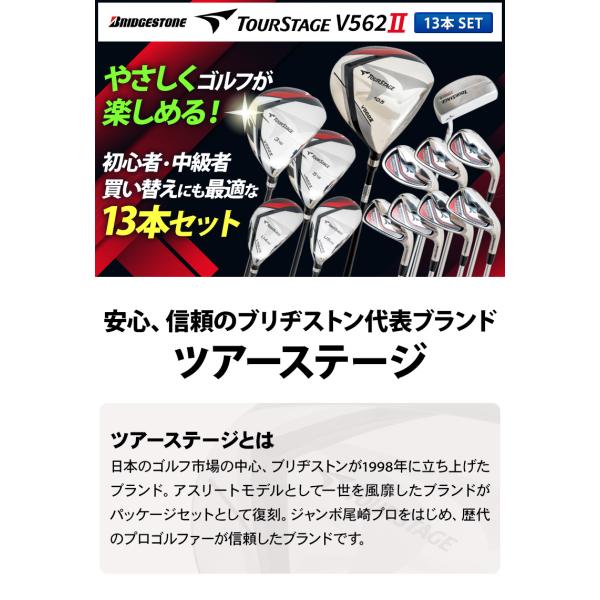 「初心者&リスタートに最適」ブリヂストン ゴルフ ツアーステージ V562II クラブセット 13本組(1W,3W,5W,4U,5U,6-P,PS,S,PT) CBTV26 カート キャディバッグ付き