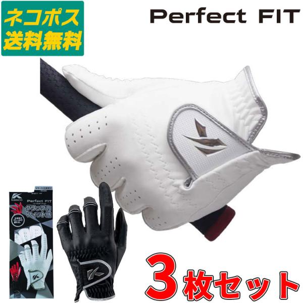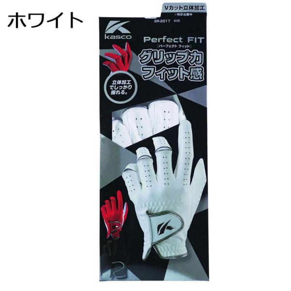 ネコポス発送送料無料 3枚セット キャスコ パーフェクトフィット メンズ ゴルフ グローブ 左手用 SR-2017 Kasco 合成皮革 ホワイト ブラック まとめ買い 即納