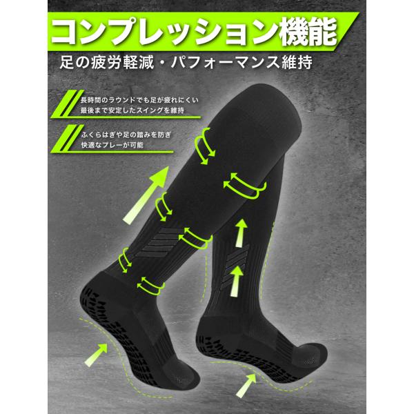 PGSocks-G ゴルフ ソックス メンズ コンプレッションソックス スポーツソックス 靴下 ブラック メンズ着圧 靴下 滑り止め付き アーチサポート 24-27cm 爆買 爆買