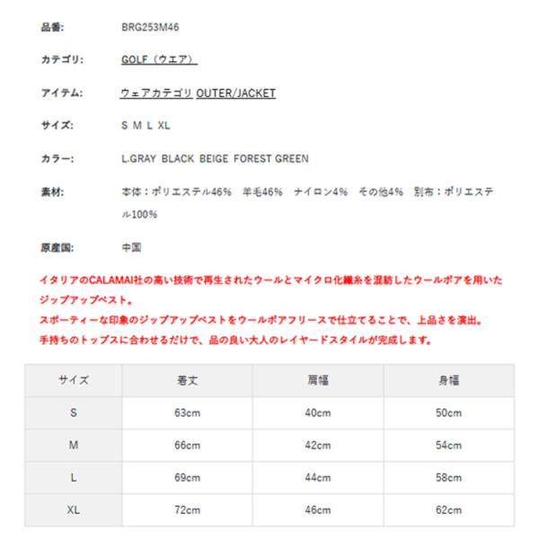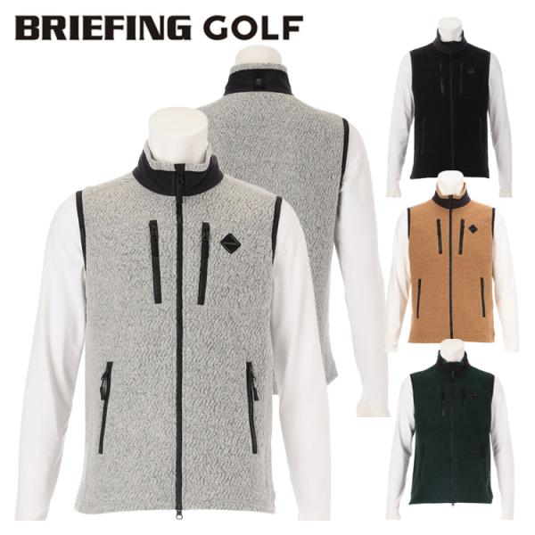 ブリーフィング ゴルフ ベスト メンズ フルジップ ウール ボア フリース 軽量 保温 スタンドネック ゴルフウェア ブランド 無地 ロゴ BRIEFING GOLF BRG253M46