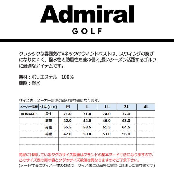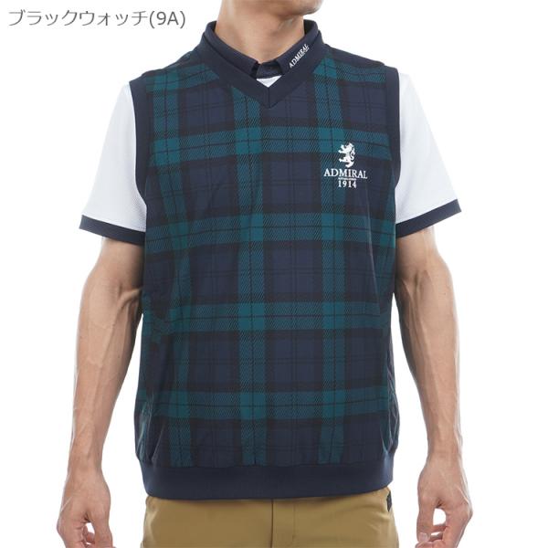 アドミラルゴルフ ベスト メンズ Vネック ウィンドベスト 撥水 防風 ストレッチ ゴルフウェア ロゴ チェック柄 ブランド ADMA603 Admiral golf