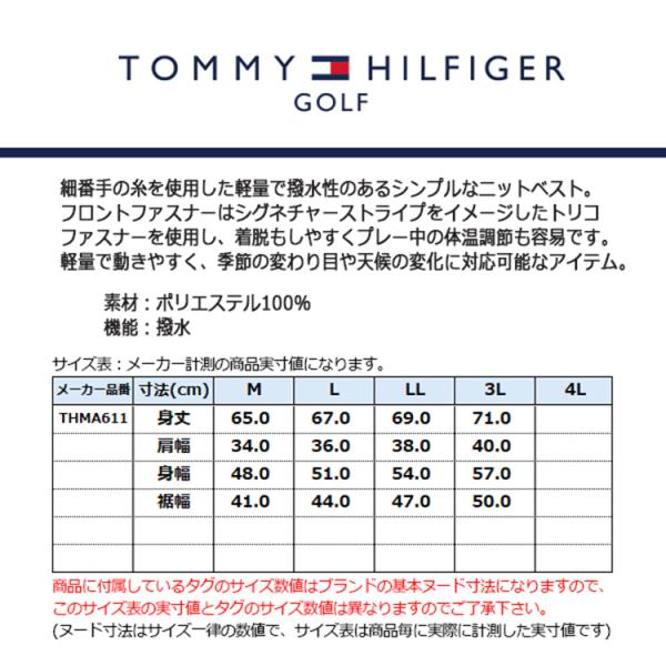 トミーヒルフィガー ゴルフ ベスト メンズ ニットベスト セーターベスト 軽量 撥水 ゴルフウェア ブランド ロゴ ライン 春 秋 冬 THMA611