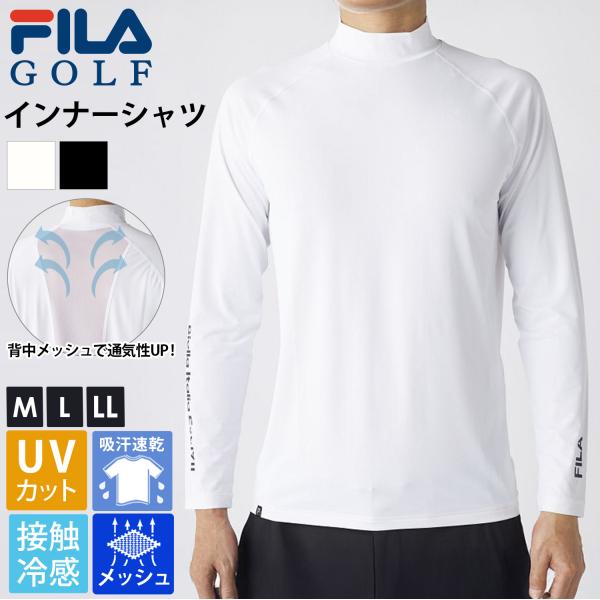 特価 FILA GOLF フィラゴルフ ゴルフウェア ハイネックインナー メンズ 長袖 春 夏 接触冷感 ひんやり 吸汗速乾 ドライ UVカット 紫外線対策 背中切替メッシュ