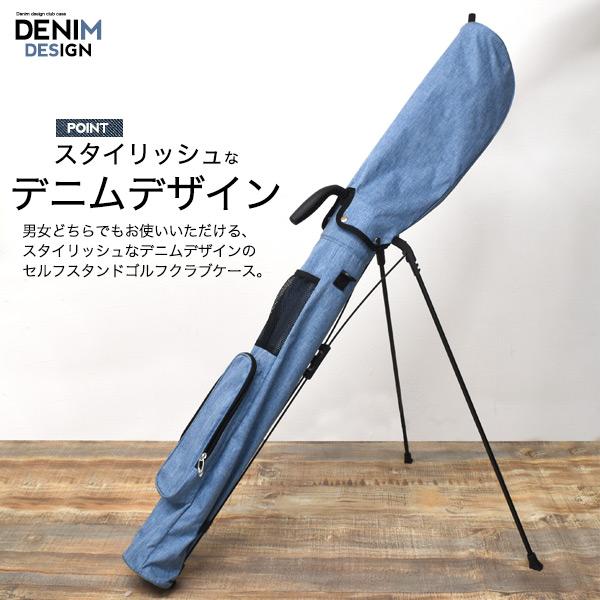 ゴルフ セルフスタンド ゴルフクラブケース デニムデザイン スタンド付き 男女両用 撥水加工生地素材 ゴルフバッグ キャディーバッグ クラブケース