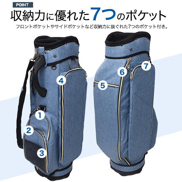 ゴルフ キャディバッグ デニムデザイン セルフスタンド ゴルクラブケース内蔵 男女両用 撥水加工生地素材 ゴルフバッグ キャディーバッグ