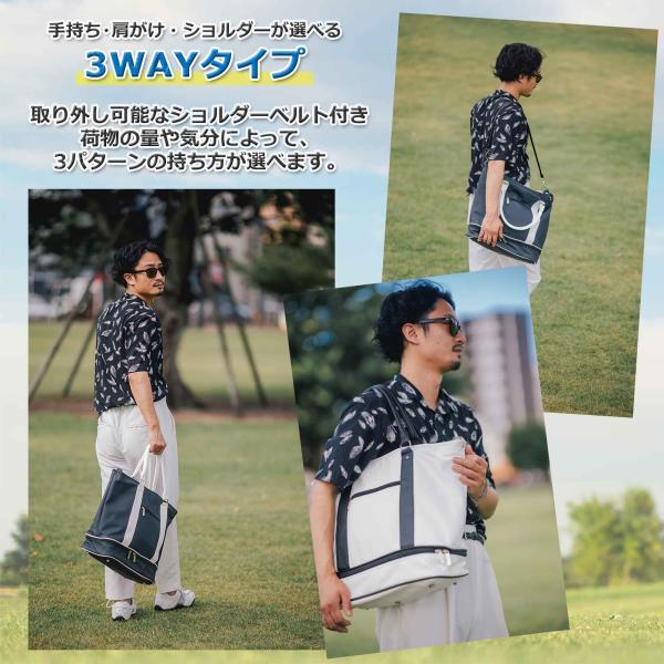 ゴルフ トートバッグ S.T.Golf メンズ 高級PUレザー 大容量 シューズ収納可 3WAY 型押しロゴ ショルダーストラップ付属 防水 50cm×40cm×20cm プレゼント 景品