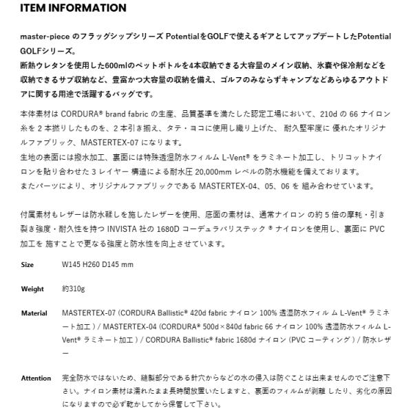 マスターピース ゴルフ 保冷バッグ 二段式構造 ラウンドバッグ ショルダー クーラーバッグ ゴルフバッグ ブランド シンプル 無地 Potential master-piece 02644