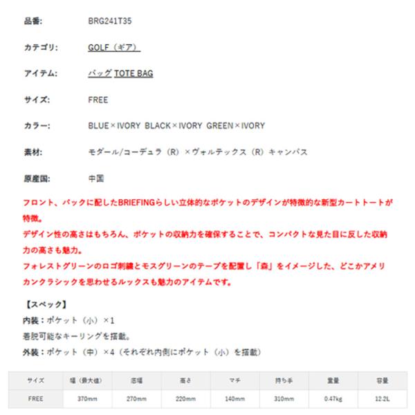 ブリーフィング ゴルフ ラウンドバッグ メンズ レディース カートトート バッグ ゴルフバッグ ヴォルテックス 無地 レア ブランド BRG241T35 BRIEFING GOLF