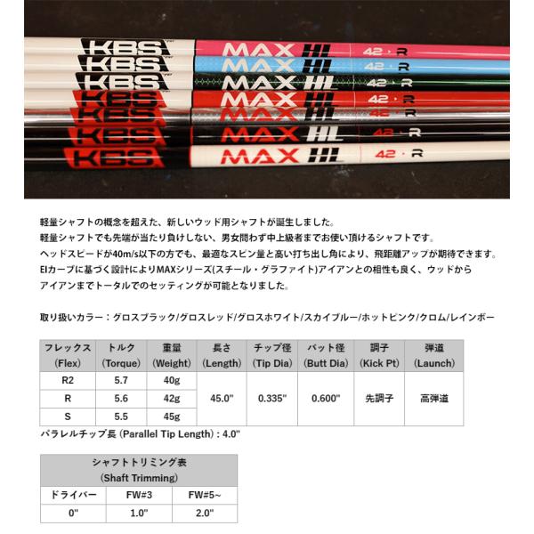 シャフト ドライバー用 KBS MAX HL 40 グラファイト ウッドシャフト (US仕様) (全7カラー)