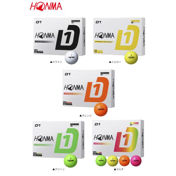 「15・16日限定!最大5,000円引きクーポン!」「送料無料」ホンマ D1 BT2401 ゴルフボール ホワイト,イエロー,オレンジ,グリーン,マルチ 2ダース/24球