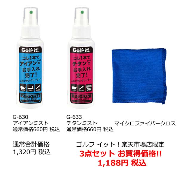 ゴルフ クラブ クリーナー セット お手入れ アイアン チタン ミストスプレー アイアンミスト チタンミスト 磨きクロス ライト LITE G-630 G-633 NG-642