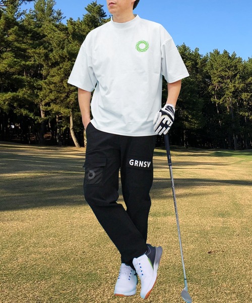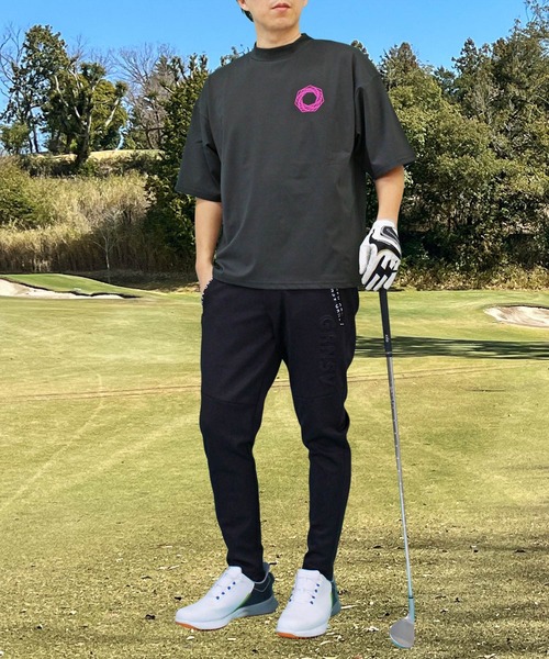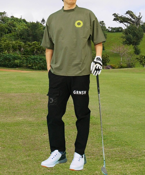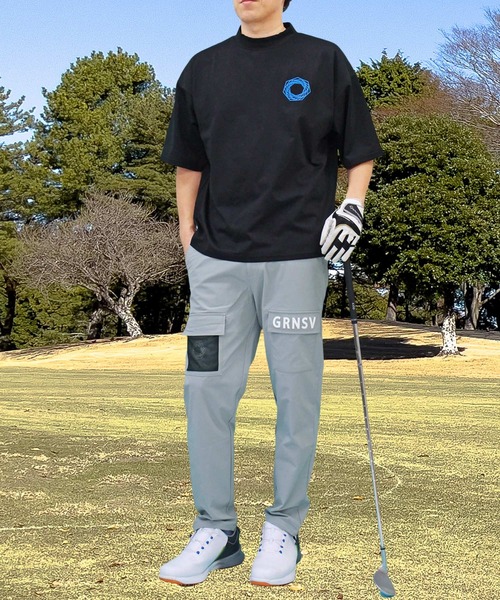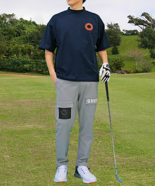 ゴルフ モックネックシャツ ゴルフウェア 半袖 接触冷感 ワイドシルエット バックロゴプリント トップス メンズ メンズ
