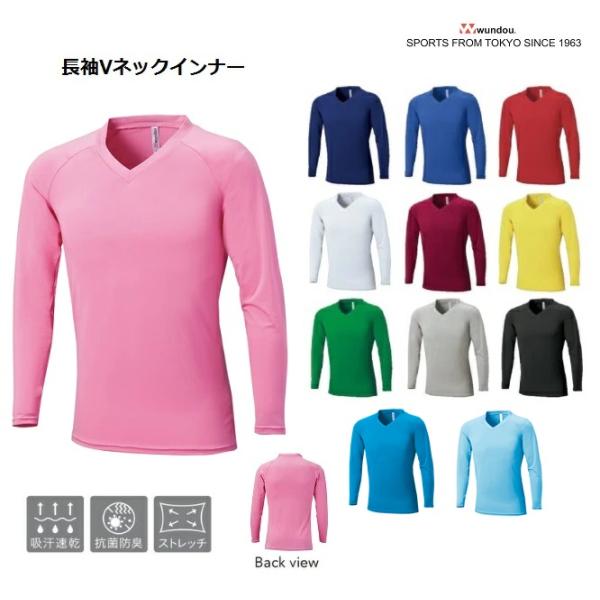 ストレッチフィット インナーシャツ 長袖 Vネック 無地 P-7200 (wundou) ロングスリーブ 抗菌防臭 吸汗速乾 アンダーシャツ