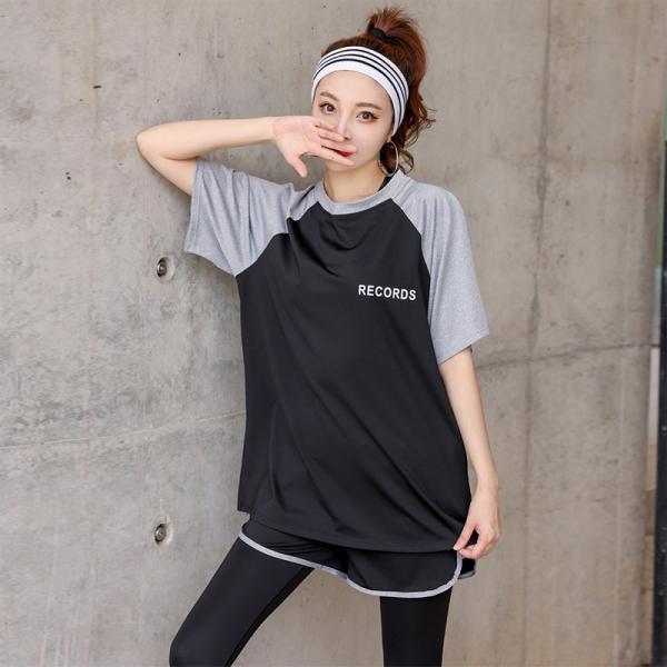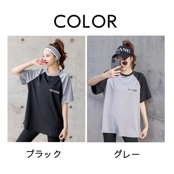 スポーツウェア レディース Tシャツ トップス ヨガウェア 配色 半袖 ゆったり 運動着 トップス フィットネス トレーニングウェア ウォーキング ジム 吸汗速乾