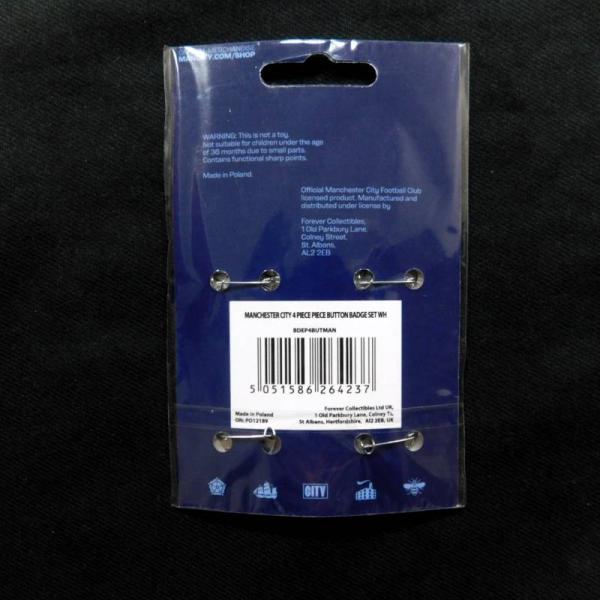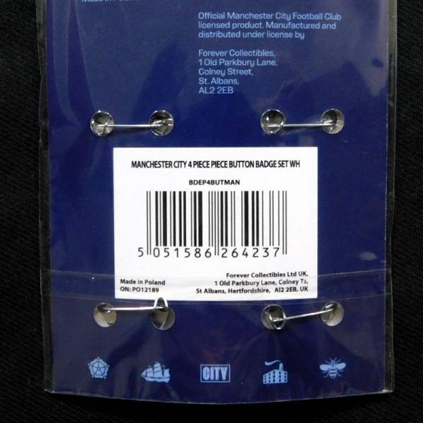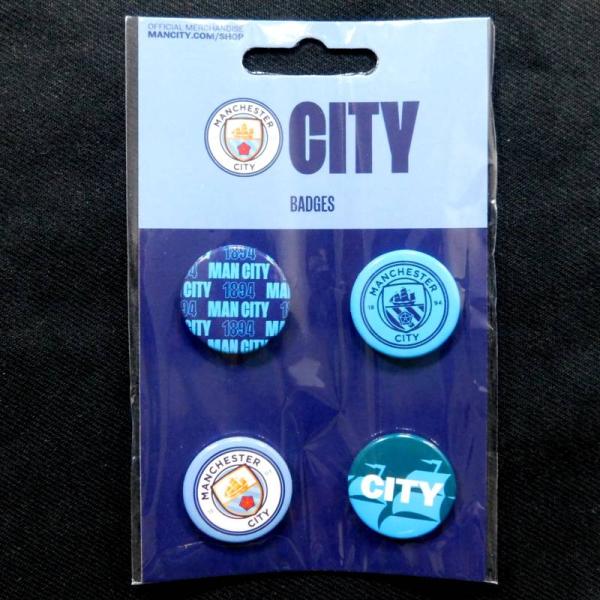マンチェスターシティ チームオフィシャル 25mm Button バッジ4個セット(正規品/メール便可)