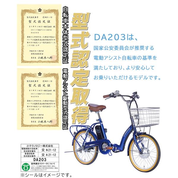 3年間無料補償サービス付 電動自転車 電動アシスト自転車 20インチ シマノ製3段変速搭載 折りたたみ自転車 自転車 アシスト自転車 型式認定取得 送料無料 DA203