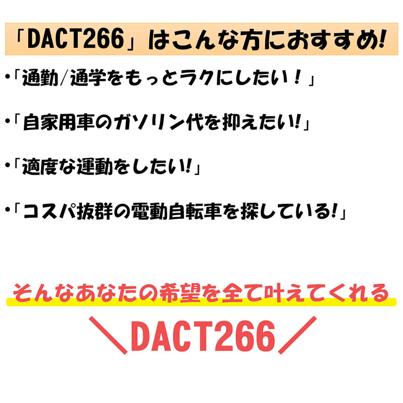 3年間無料補償サービス付 電動自転車 電動アシスト自転車 26インチ シマノ製6段変速搭載 自転車 電動 アシスト自転車 型式認定取得 送料無料 DACT266