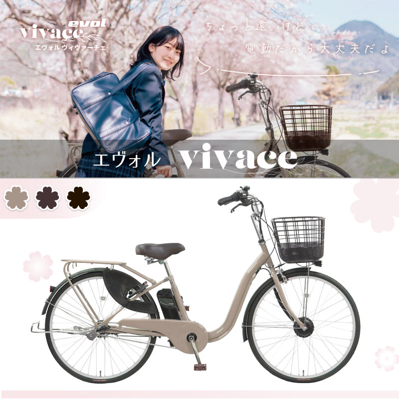 送料無料※一部地域 エヴォル ビバーチェ EVOL EVV63A 9Ah相当 3段変速 26インチ 電動自転車 電動アシスト自転車 通勤 通学 買い物 ASAHI ツヤケシブラック