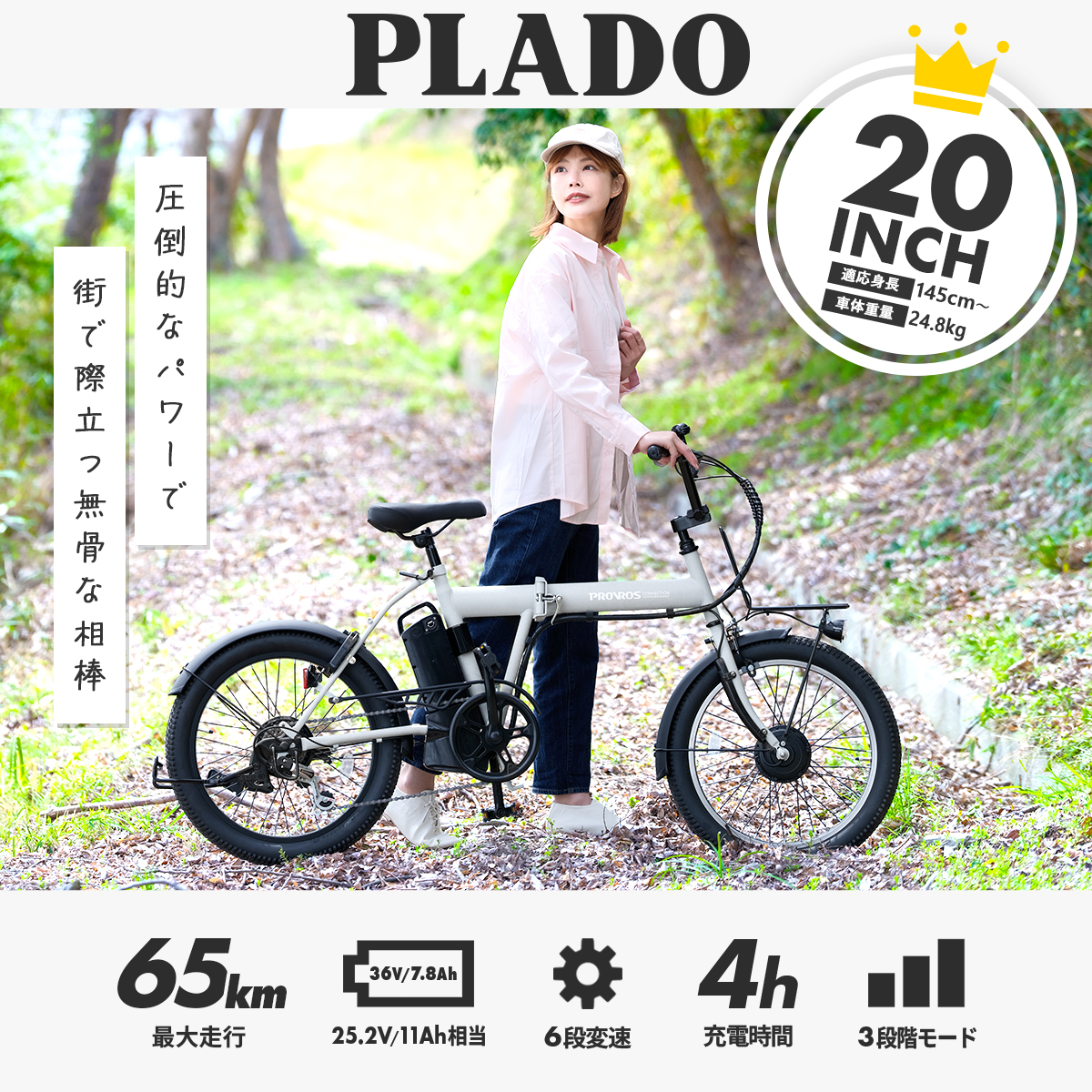 PLADO プラド 電動自転車 電動アシスト自転車 折りたたみ 20インチ シマノ6段変速 最大65km走行 公道可能 PROVROS P-M206Epro