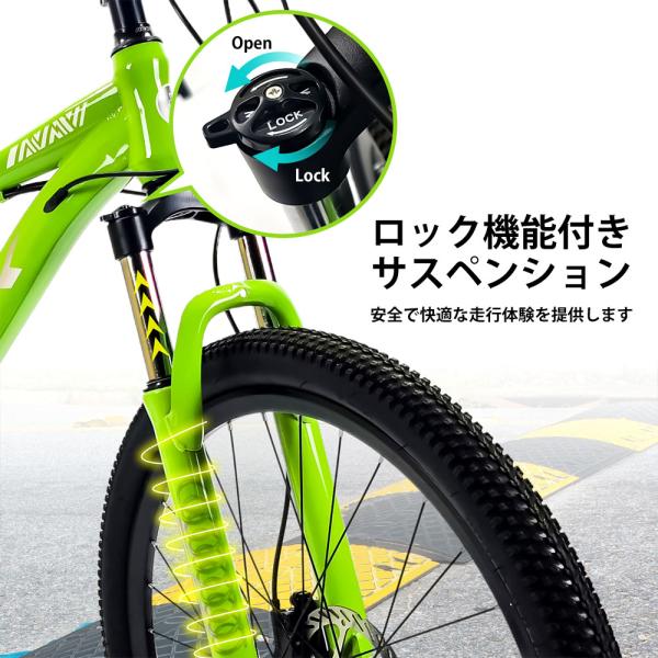 マウンテンバイク 自転車 26インチ 21段変速 シマノディスクブレーキ リアサスペンション ロック機能付き 2.0タイヤ アルミ合金ペダル 街乗り 都市 旅行 アウト