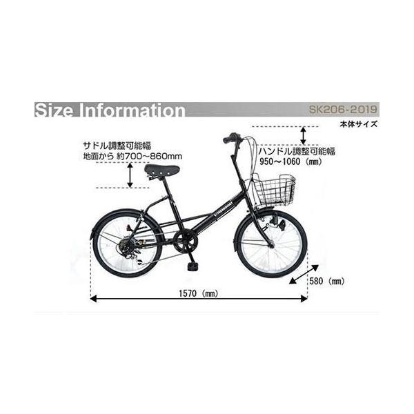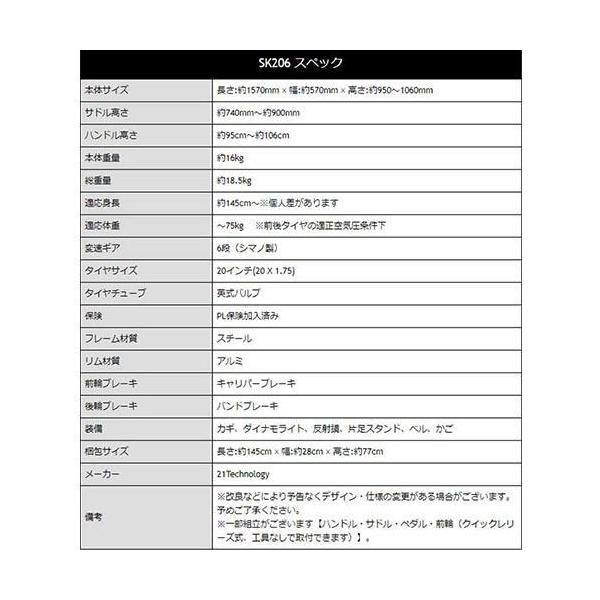 自転車 サイクル 21テクノロジー 20インチ シマノ製ギア 6段変速 カゴ付き SK206 [マットブラック]