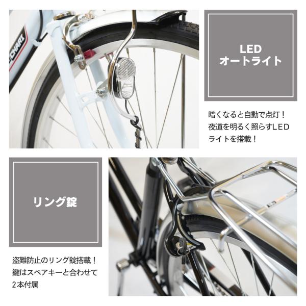 【営業所受取商品】 自転車 27インチ ノーパンクタイヤ オートライト シマノ 変速 シティサイクル パンクレス 空気入れ不要 ガクチャリ 自転車本舗 送料無料