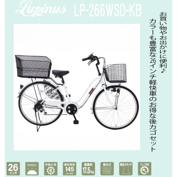 自転車26インチLupinus(ルピナス)LP-266WSD 後カゴ付き軽快車 6段変速 ダイナモライト 東京・神奈川・大阪送料無料!
