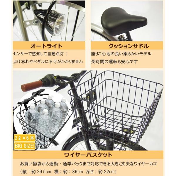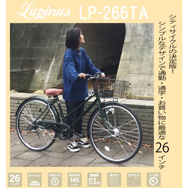 自転車 26インチ LEDオートライト シティサイクル ママチャリ ルピナス LP-266TA 東京・神奈川・大阪送料無料!
