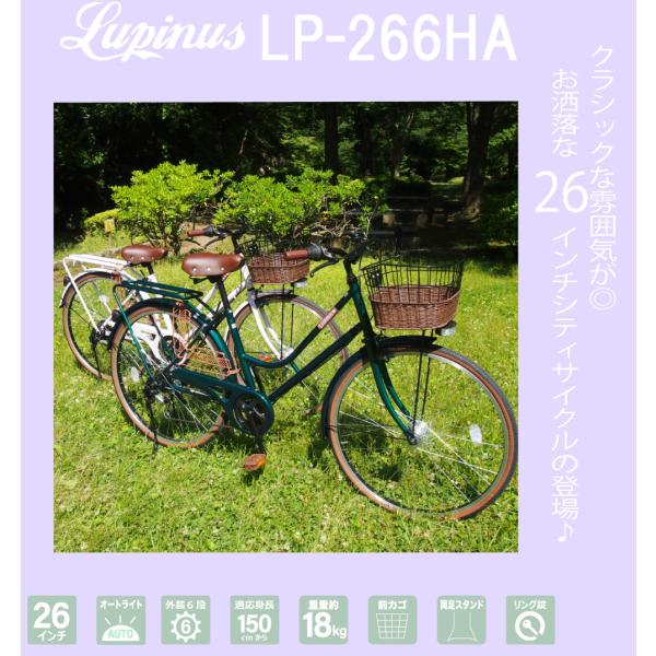 自転車 26インチ LEDオートライト シティサイクル ママチャリ ルピナス LP-266HA 東京・神奈川・大阪送料無料!