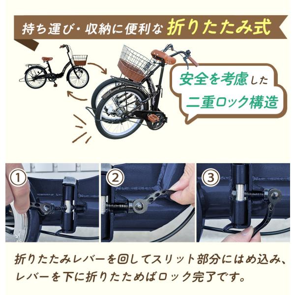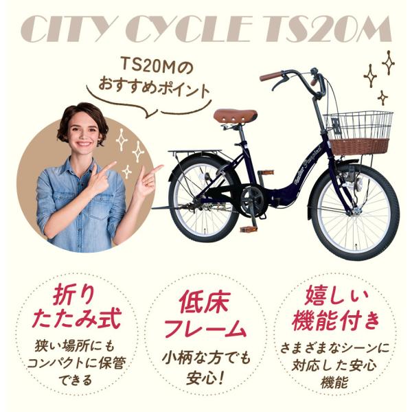 AIJYU CYCLE シティサイクル 折りたたみ自転車 20インチ 折り畳み 自転車 荷台付き 鍵付き 両立スタンド ママチャリ [TS20M]