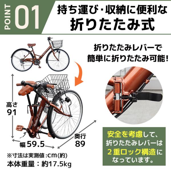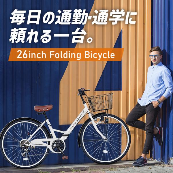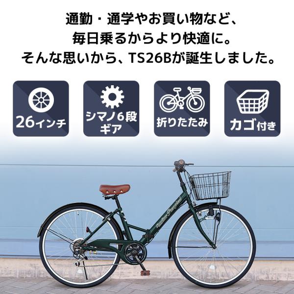 AIJYU CYCLE シティサイクル 折りたたみ自転車 26インチ シマノ6段ギア 折り畳み 自転車 鍵付き [TS26B]