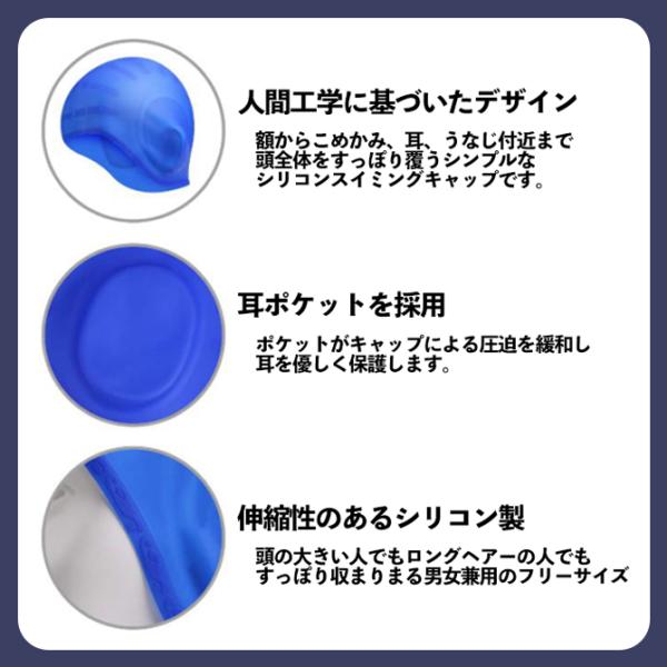 スイムキャップ 耳ポケット付 シリコンスイミングキャップ フィット すっぽり 防水 UVカット ルモード C-bousimimi