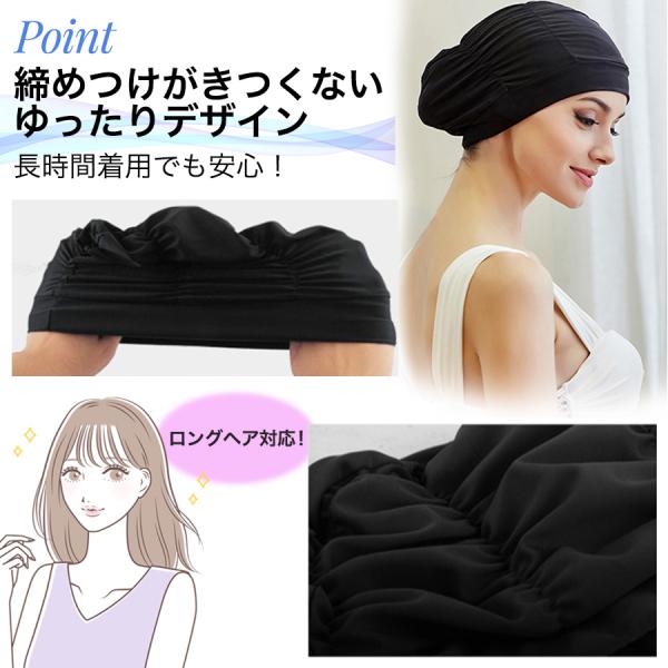 水泳帽 スイムキャップ 長い髪 大きめ ゆったり プール レディース おしゃれ ロングヘアー スイミング きつくない キッズ 子供 大人 大きいサイズ 黒 紺 白