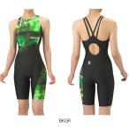 アリーナ ARENA 競泳水着 レディース WA承認モデル レーシングワンピーススパッツ オープンバック ハーフレッグ AQUA RACING ECO AQUA STRIPE-D WAVES AS5FRC55L