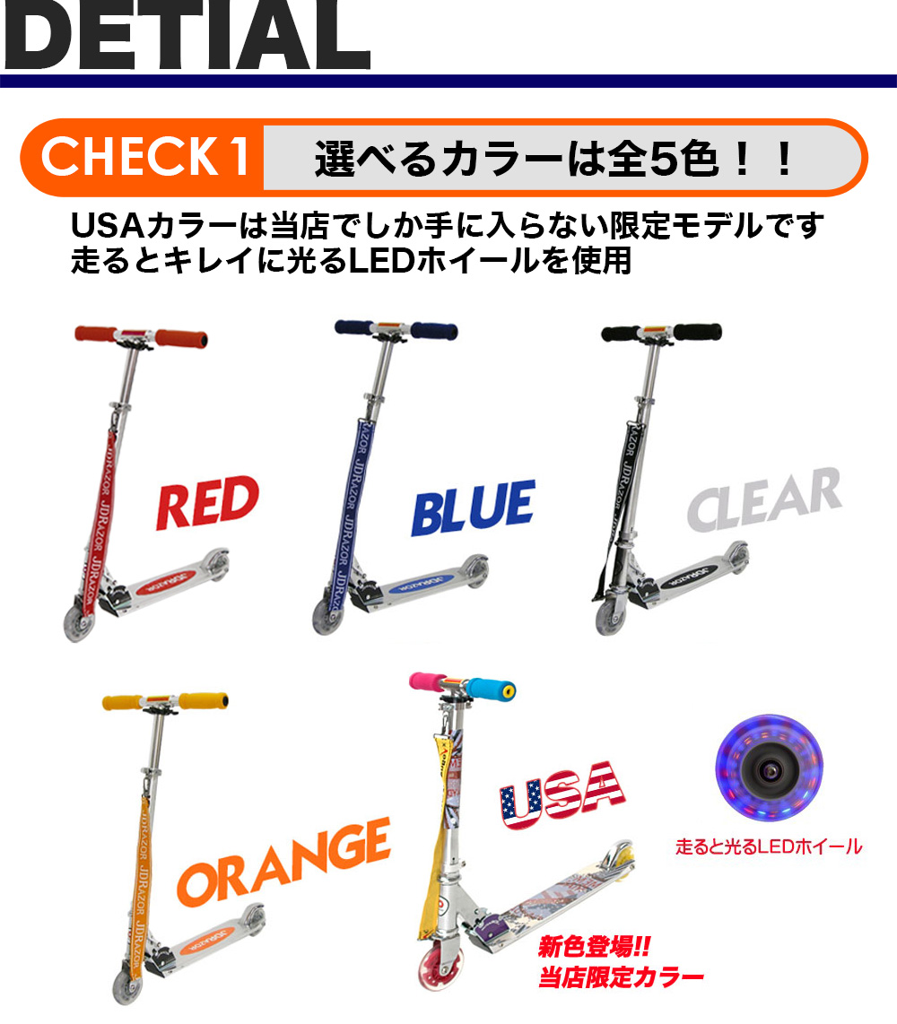 キックボード 子供 大人用 子供用 光るタイヤ キックスケーター キックスクーター フット ブレーキ付き 当店限定 JD RAZOR MS-102LED ストラップ付