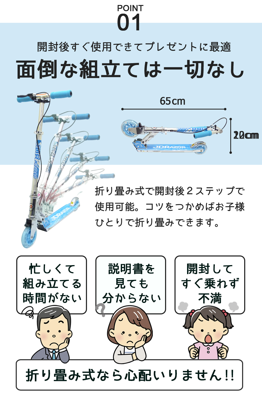 キックボード 子供 大人用 子供用 光るタイヤ キックスケーター キックスクーター ハンド フット ブレーキ付き JDRAZOR MS-105R-B 当店限定 折り畳み