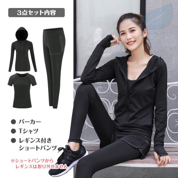 トレーニングウェア レディース 上下3点セット スポーツウェア セット ヨガ ランニングウェア ウォーキング