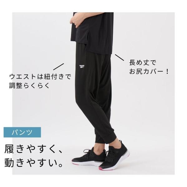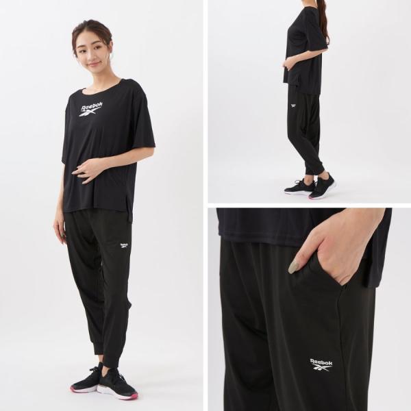 5分袖Tシャツ+パンツ2点セット フィットネスウェア レディース Reebok ヨガ 上下2点セット トレーニングウェア 部屋着に 体型カバー 342913 SALE