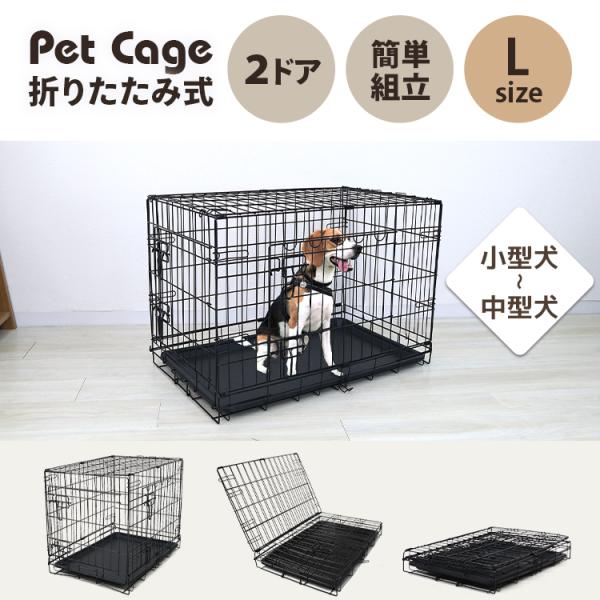 ペットケージ 折りたたみ Lサイズ 中型犬 引き出しトレー ダブルドア ペットサークル ペットゲージ 室内 小型犬 犬小屋 ケージ 犬 ペット ドッグ